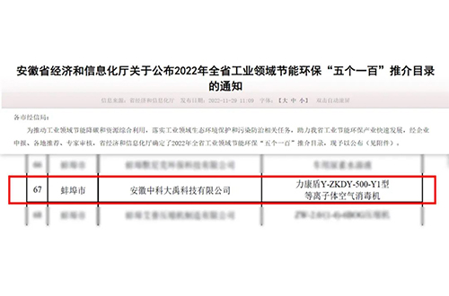 力康盾等離子體空氣消毒機成功入選節能環保新產品新裝備