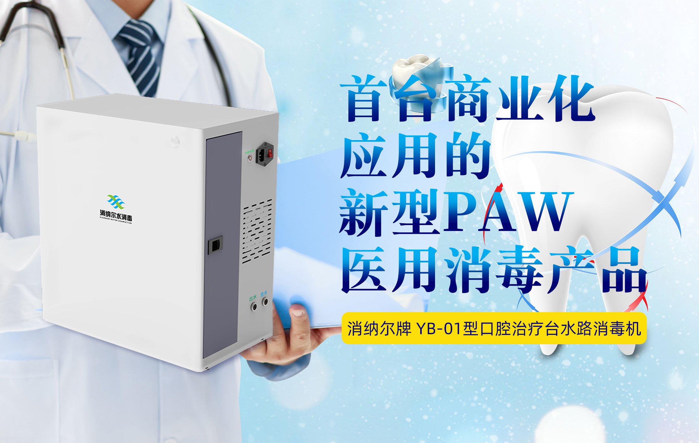 首臺商業化應用的新型 PAW 醫用消毒產品,消納爾牌口腔治療臺水路消毒機